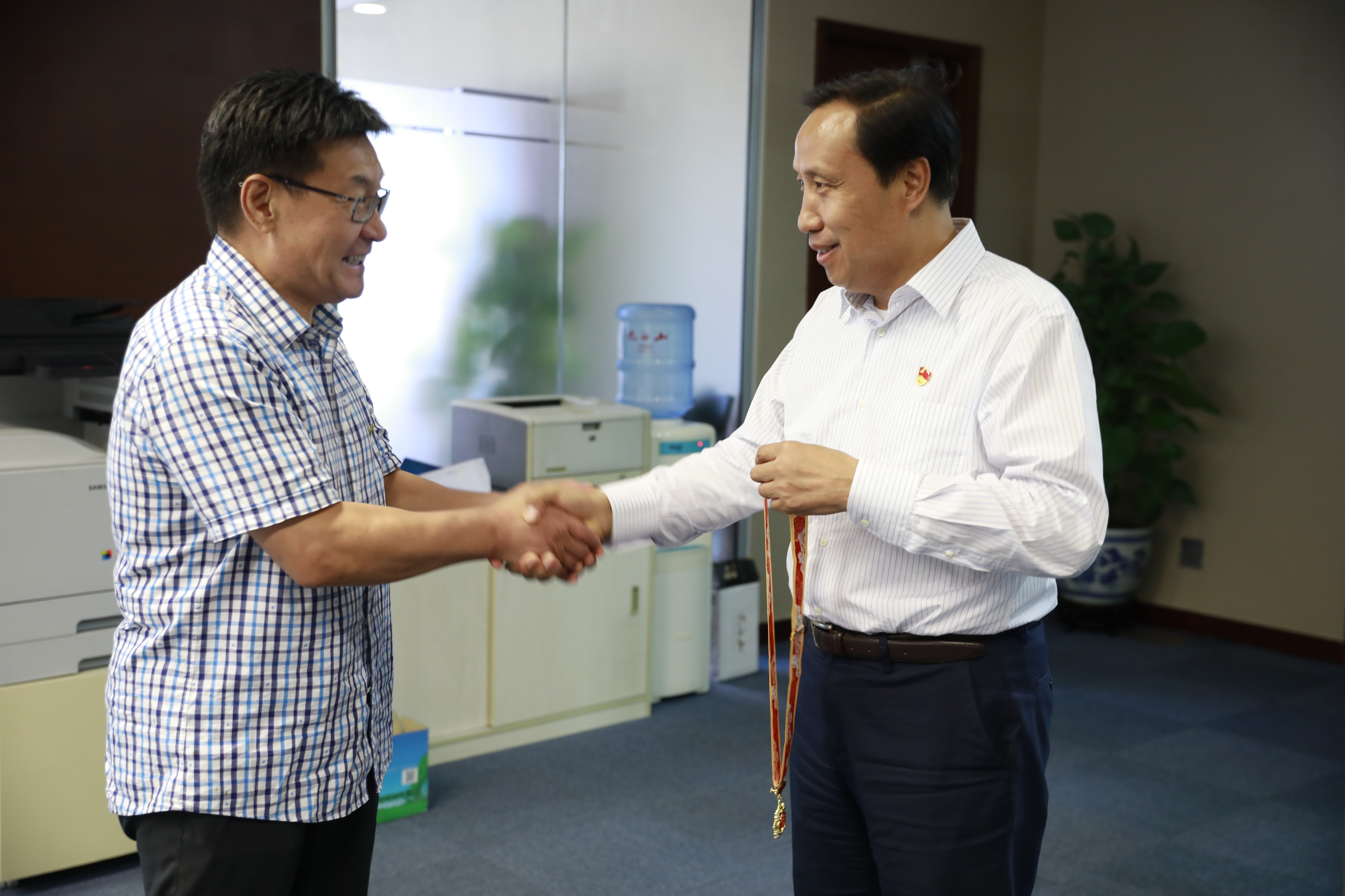 新中國成立以來,京能集團(tuán)印偉民、劉榮、張興文、馬植勝、田鳳林、崔淑敏、黃祖旺七人獲全國勞模稱號(hào)。近日,京能集團(tuán)工會(huì)在集團(tuán)黨委副書記、工會(huì)主席李迅的帶領(lǐng)下,走進(jìn)其中六位退休勞模家中,將“慶祝中華人民共和國成立70周年”紀(jì)念章和鮮花送到勞模手里,并同勞模們親切握手交談,仔細(xì)詢問他們的身體和家庭情況。