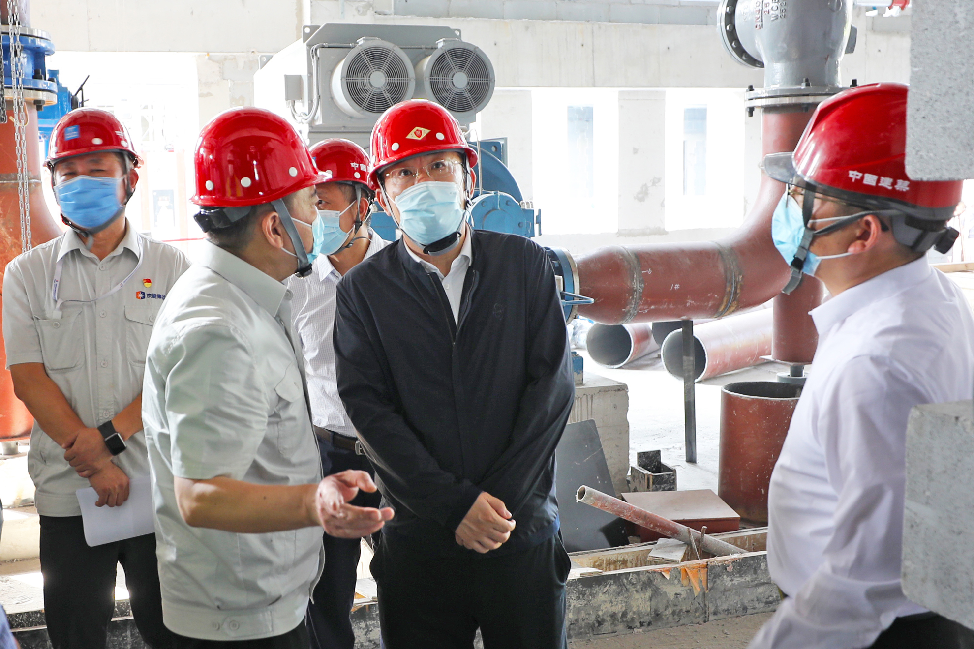 姜帆強調,要從嚴從細抓好疫情防控工作,嚴格落實施工現場、人員的封閉式管理,同時監督下屬單位、外包單位防疫管理責任的落實落地。