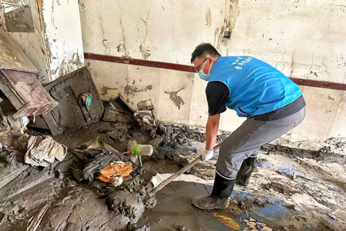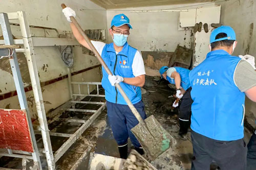 8月23日早上8:30,京能集團“能小青”青年突擊隊準時到達受災區域,屬地負責人講解了作業過程中的注意事項并安排了工作任務,隊員們鉚足干勁,迅速投入到淤泥、垃圾清理工作中。