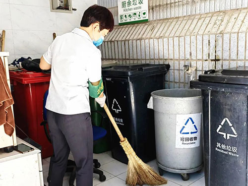 堅持巡查樓層垃圾分散收集點,保障垃圾分類執行到位